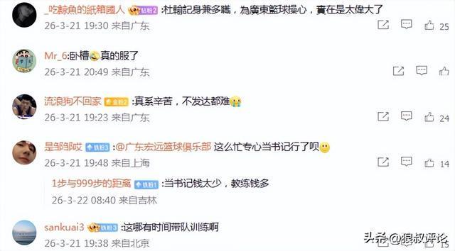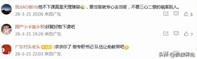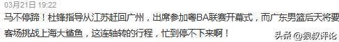 但“粵BA”的開幕式,剛剛打完江蘇客場的杜鋒,並沒有跟隊前往上海,而是返回廣東引發不少球迷的熱議。認為他身兼多職,是否真能完全兼顧下來引發爭議。