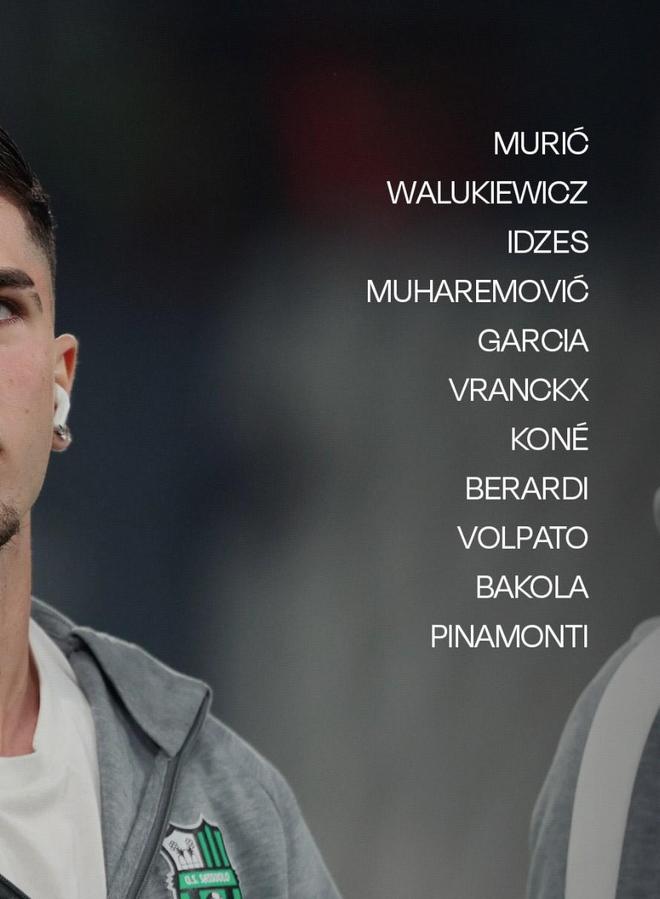 薩索洛首發:49-穆裡奇、80-穆哈雷莫維奇、21-伊澤斯、6-瓦盧凱維奇、23-烏利塞斯-加西亞、50-巴科拉、90-科內、7-沃爾帕托、40-弗蘭克斯、99-皮納蒙蒂、10-貝拉爾迪