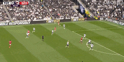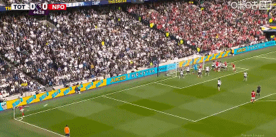 面對積分少自己1分的諾丁漢森林,這是熱刺必須要拿分甚至贏球的“保級生死戰”,然而第45分鐘,熱刺卻率先丟球。做客的諾丁漢森林隊利用角球機會,由伊戈爾-熱蘇斯頭槌破門,取得比分領先。
